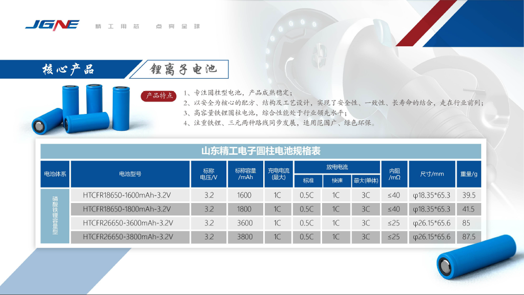 山東精工電子科技有限公司(品牌:精工 JGNE)成立于2008年,是中國航天科工集團旗下的一家高新技術企業。山東精工JGNE的主要產品:超級電容、鋰離子電池等,致力于新能源產品的研發應用并使其產業化。主要客戶包括中船重工、美國通用電器GE、英國PK、德國BMZ等國內外知名企業。